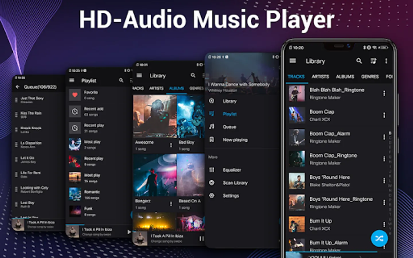 Music Player with built-in sound effect controller and powerful 10 bands Equalizer, you can easily use Tuner, and get professional sound effect, it is one of the best app for music and audio player for Android. Music player can fulfill all your musical needs!