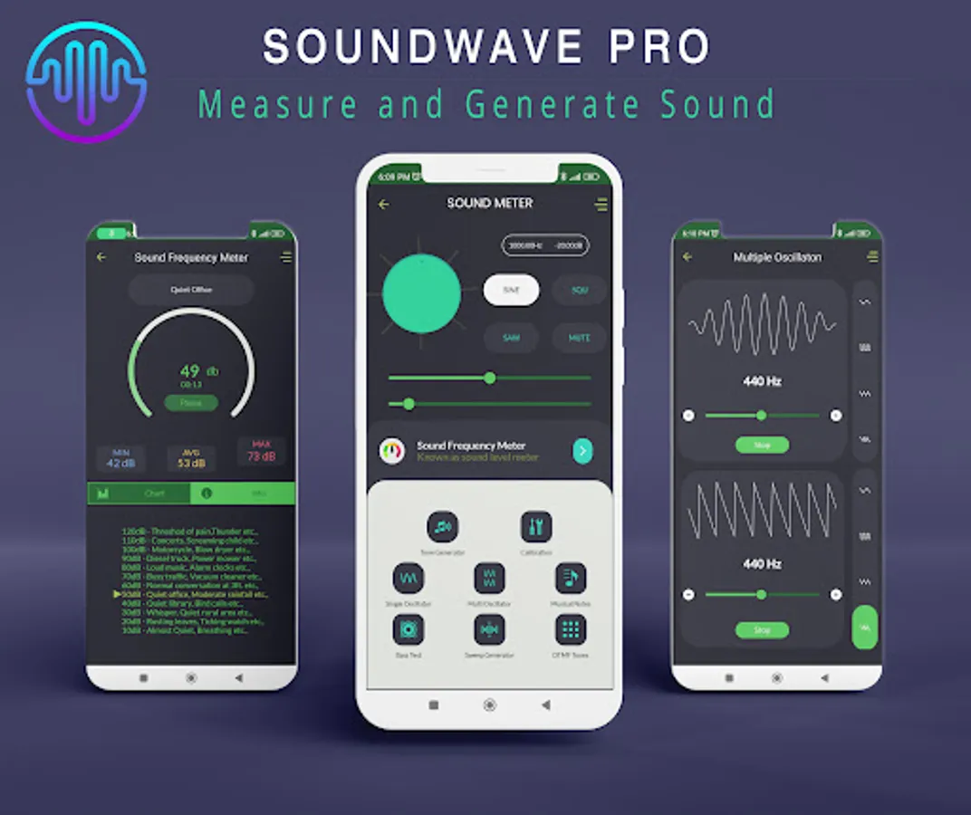 Using this app, you can easily detect the level of environmental noise in your area and prevent any hearing damage caused by high decibel values. The app provides a digital sound level meter that shows the decibel value of the sound measured, including acoustic waves, and generates different types of surrounding sound frequencies offering Visual and graph display.