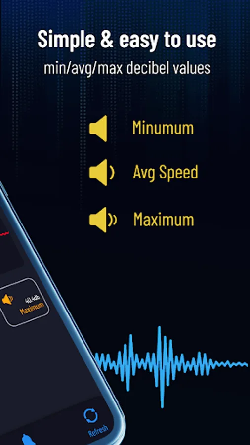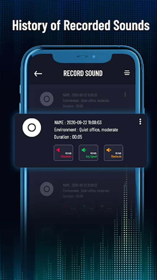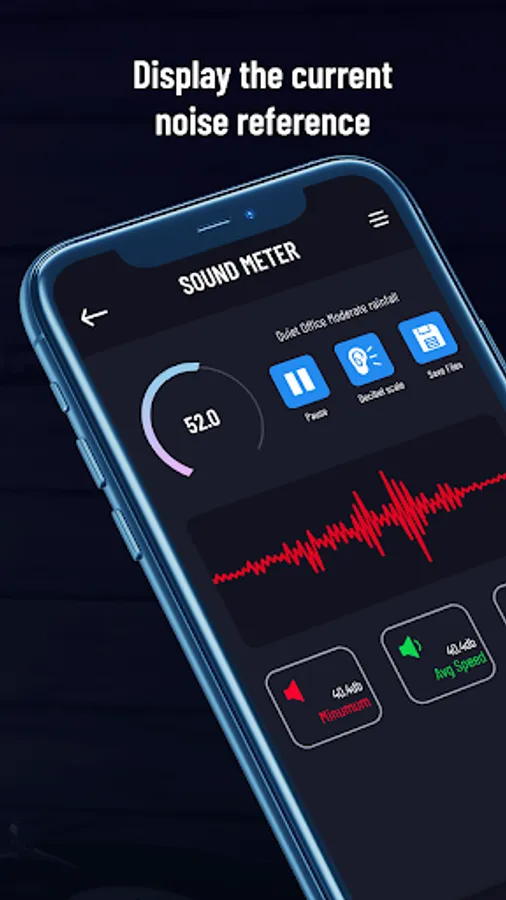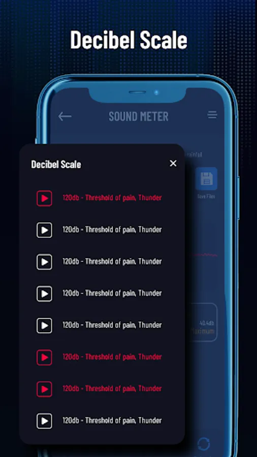 - Sound Meter or Decibels indicator (dB) in real time