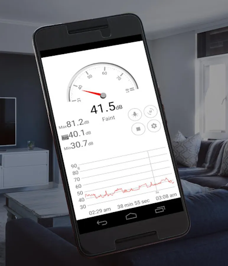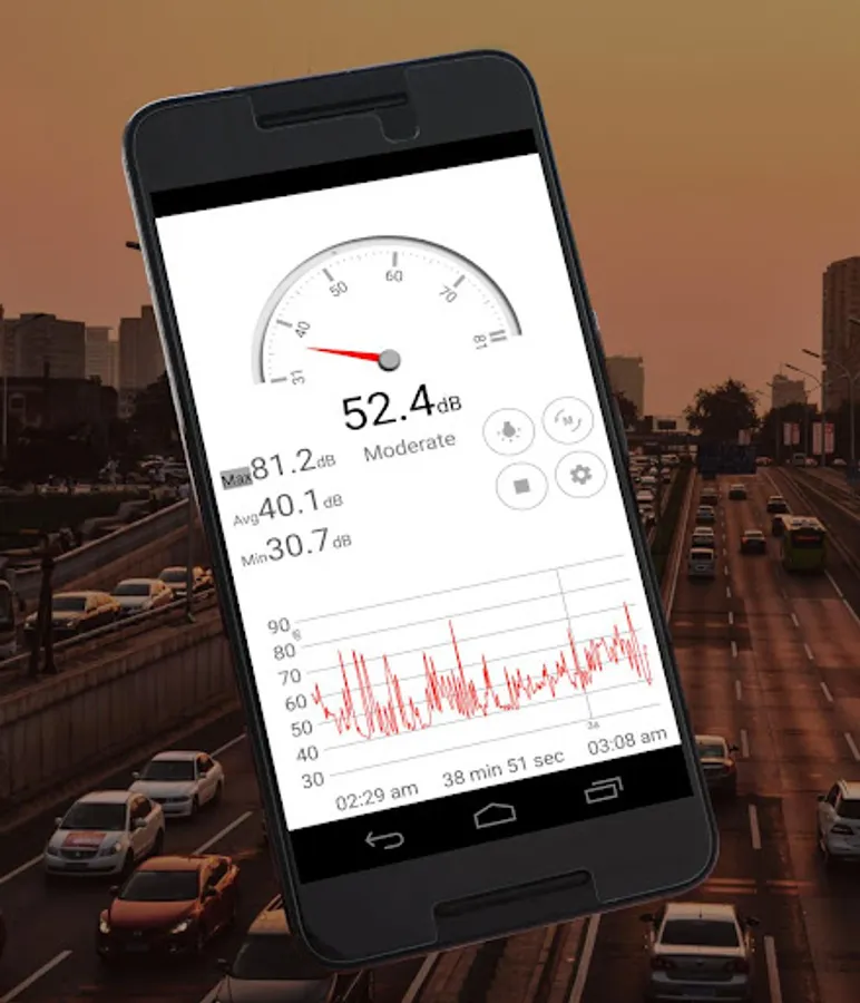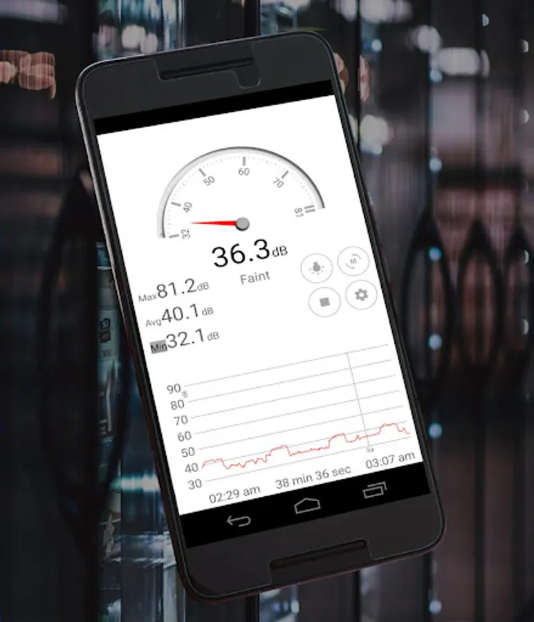 db Meter is a free sound meter app that measures environmental sound levels and plots them over several hours.