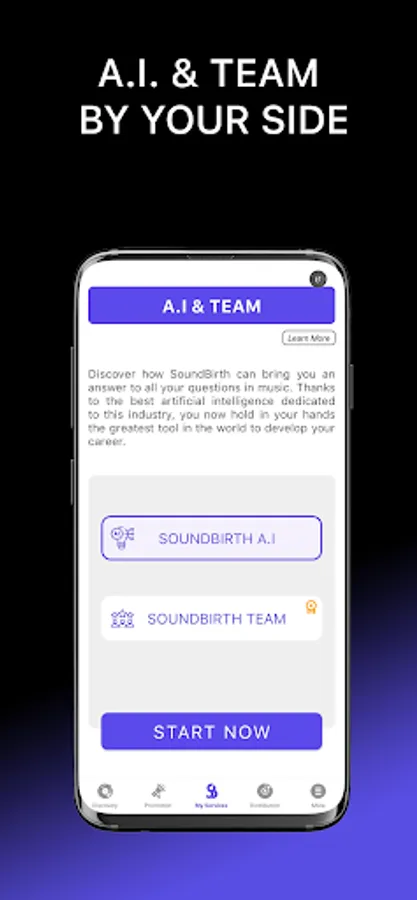 Access to a team of professionals ready to take care of you at anytime and meet SoundBirth A.I., the best music AI that's entirely dedicated to you & your music career.