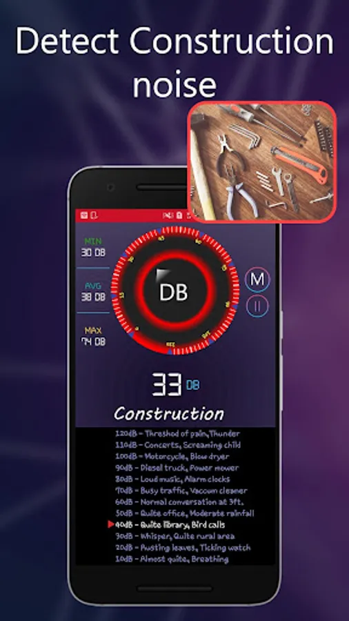 Noise Detector: Noise Decibel-Sound Level Meter Features: