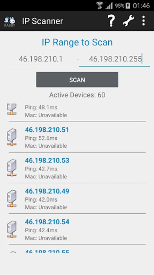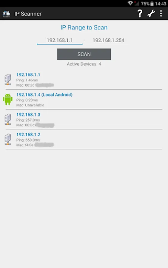 Just add the IP range you want to scan and click the scan button.