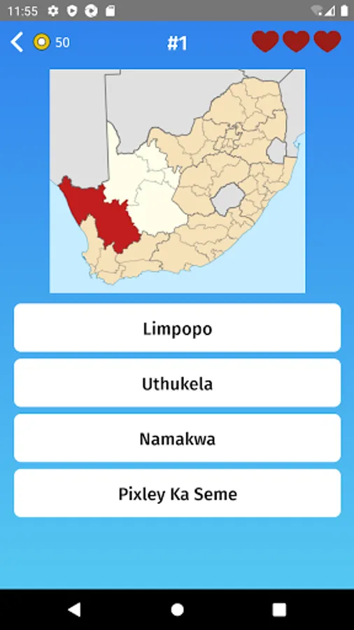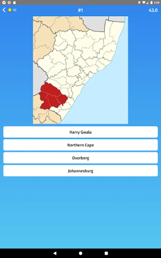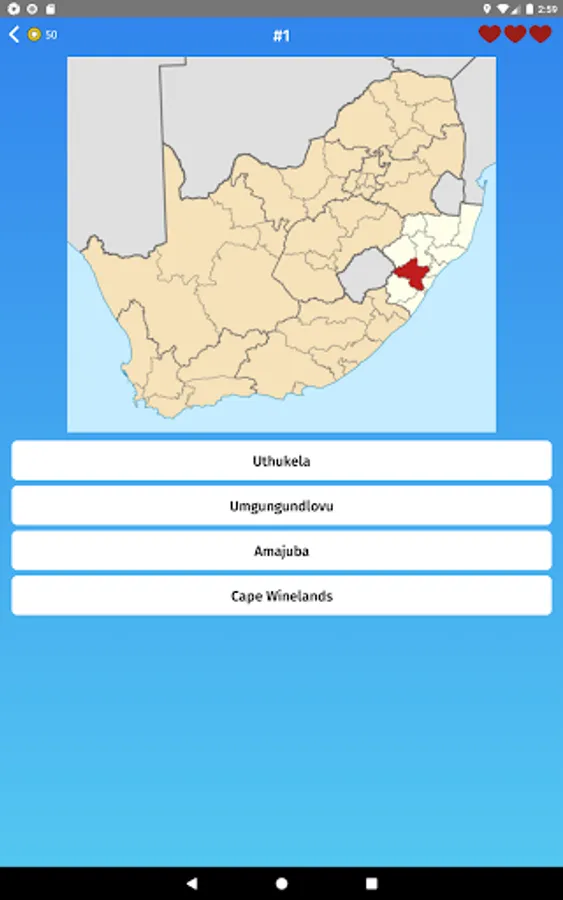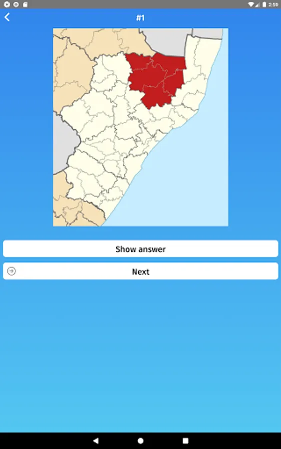 - Multiple choice: guess the provinces of South Africa, by selecting one of the variants.
