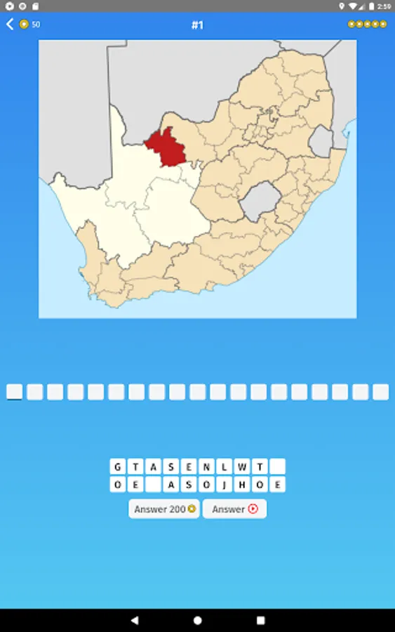- Blank map: memorize shapes of South Africa in map puzzle.