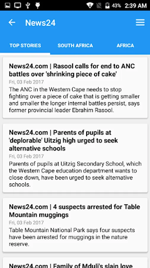 It’s a fast an easy way to read the top headlines from South Africa in English and Afrikaans. With South Africa News (Suid-Afrika nuus) you can quickly read the breaking news at any time. It gives you access to the most popular newspapers and it’s totally free to use.