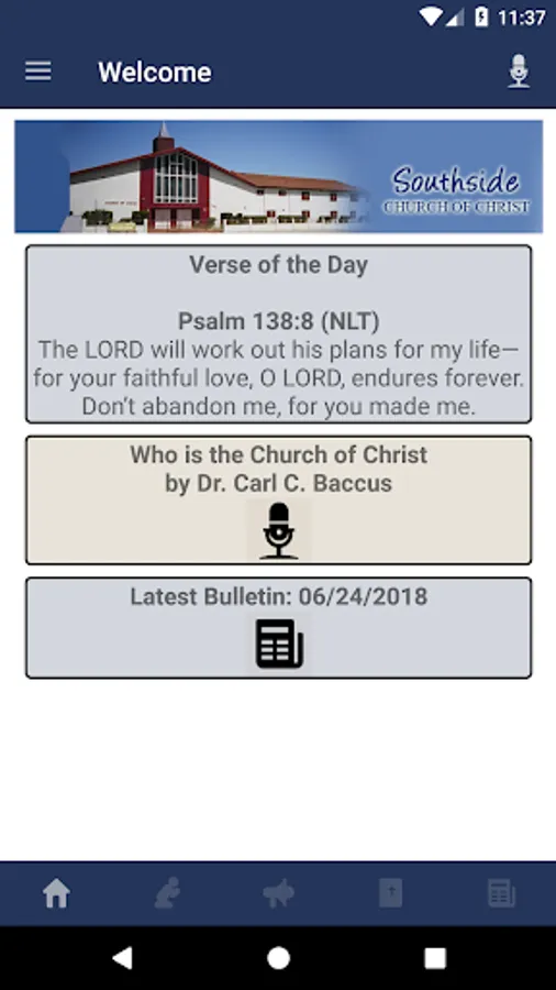 This app provides access to sermon audio, bulletins, announcements, online giving and more!