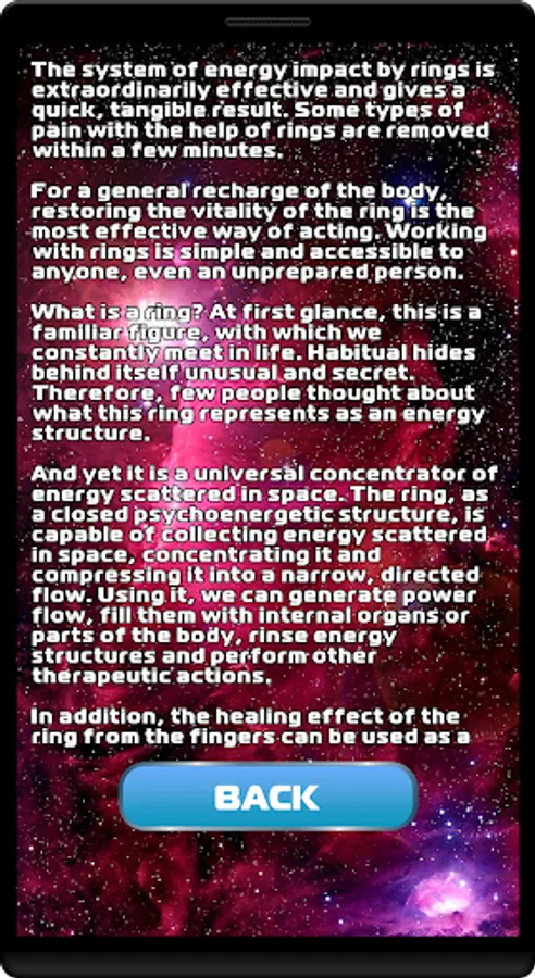 The system of energy impact by rings is extraordinarily effective and gives a quick, tangible result. Some types of pain with the help of rings are removed within a few minutes.