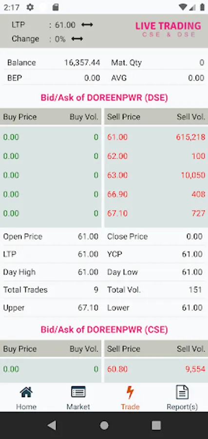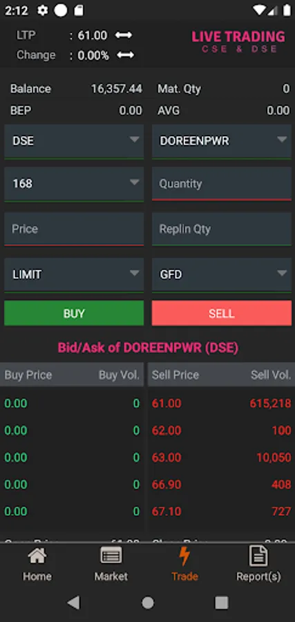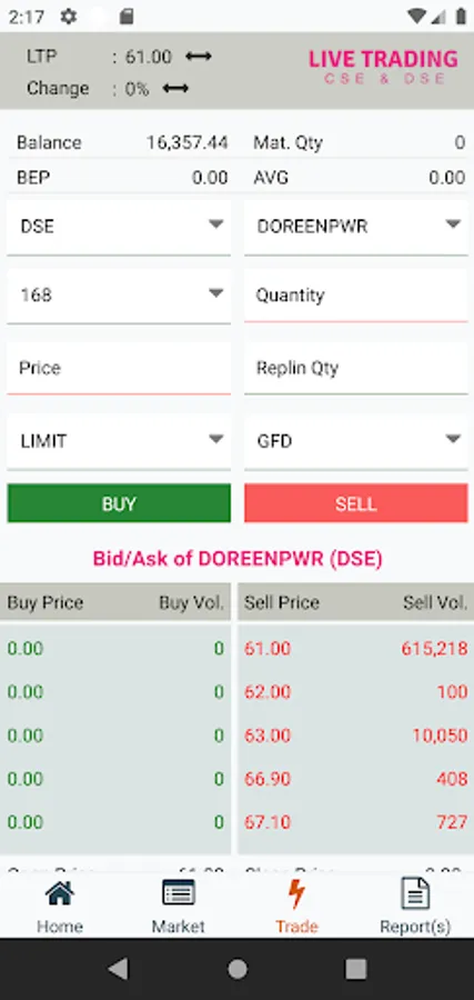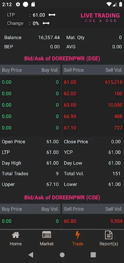 5. Advanced Trade window with Dual Exchange Scrip info.