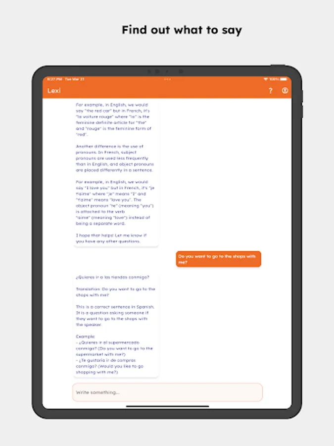 Learn English, Spanish, French, Chinese, and More: Lexi supports a wide range of languages, catering to both beginners and advanced learners. Whether you want to learn English, Spanish, French, Chinese, or any other language, Lexi has you covered!