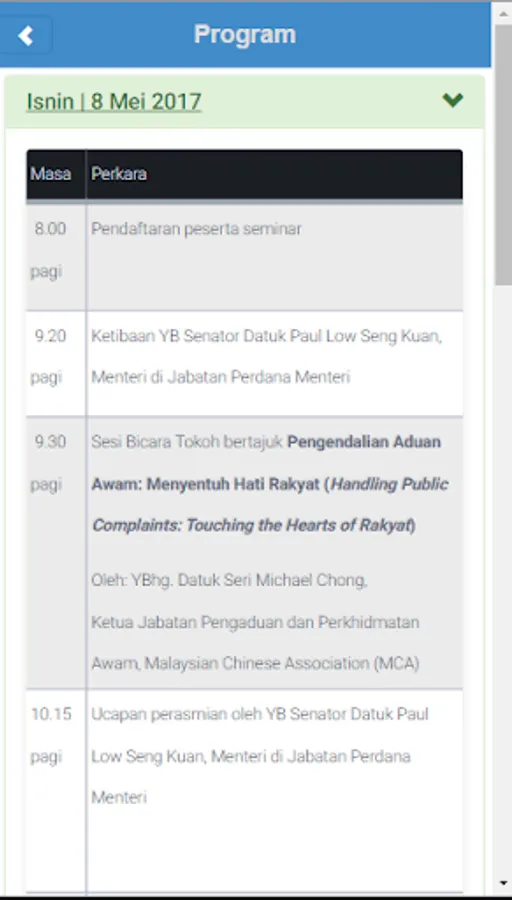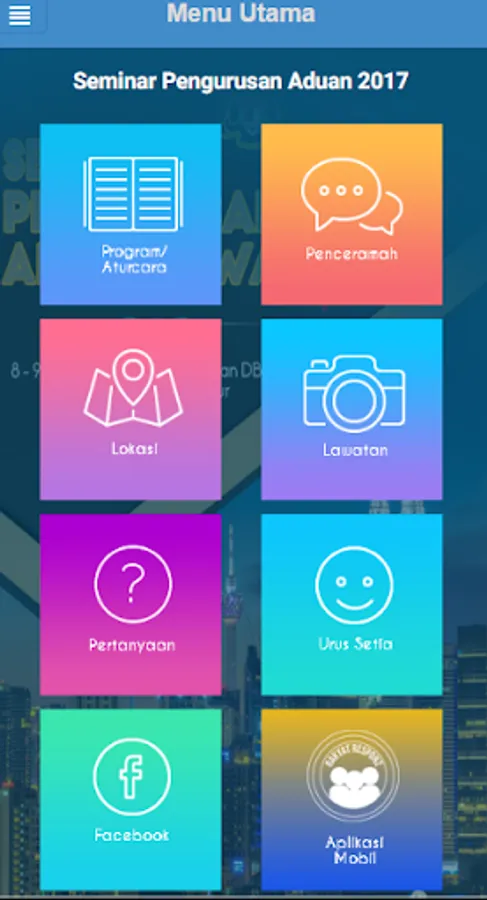 Aplikasi  Mobil Seminar Pengurusan Aduan Awam 2017 merupakan satu inovasi Biro Pengaduan Awam bagi memudahkan peserta seminar memperoleh maklumat ringkas mengenai keseluruhan perjalanan seminar yang diadakan pada 8 dan 9 Mei 2017 di Institut Latihan Dewan Bandaraya Kuala Lumpur (IDBKL), Kuala Lumpur.  Modul yang terdapat di dalam aplikasi ini adalah seperti berikut:-