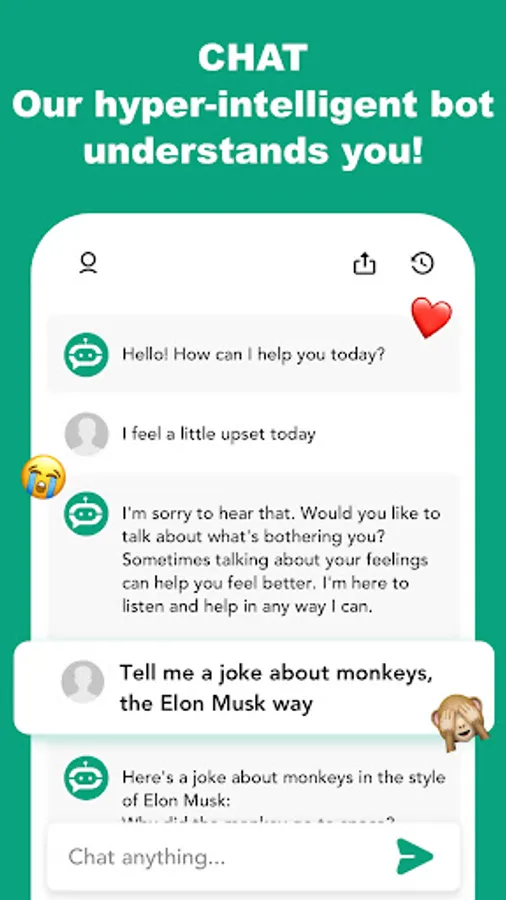 AI3 is an amazing and fun way to get answers to any question. Ask our smart ChatBot anything, and it's always ready to help with any specific topic. No matter general knowledge, all kinds of recipes, different languages translation, math problems, celebrities related, healthy lifestyle suggestions, and more, AI3 can generate natural responses to questions quickly and accurately. It provides a comprehensive understanding of the world, allowing users to ask questions in the way they would normally talk. Just give it a try and watch the app make the magic happen!