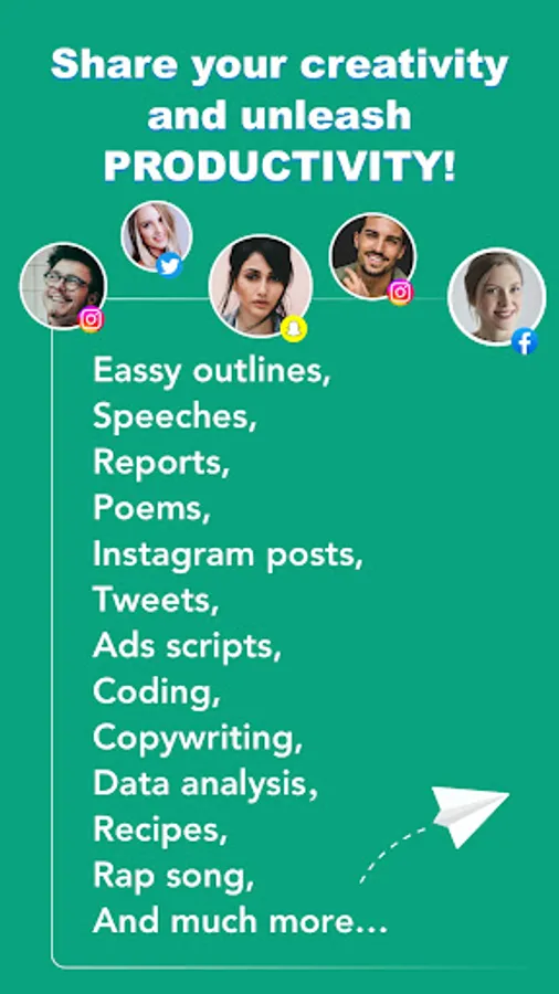 Whether you want to write short or long-form content (draft essays, emails, articles, stories, poetries, blogs, job applications, business inquiries, rap songs, etc.), or even want to find perfect captions and hashtags for your Instagram/TikTok posts or tweets to get more views, likes, and followers.