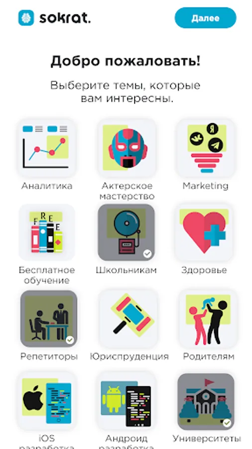 Do you want to get a new education and are ready to start self-study, are you looking for courses or do you want to enter a university? Have you chosen a new profession? Sokrat. help you with this! Simply install the Sokrat app. on your smartphone and launch the app. You will immediately be asked to take a short test to determine your personality type. This knowledge will help you better understand what skills you should master first, and it will also help with your future career choice.