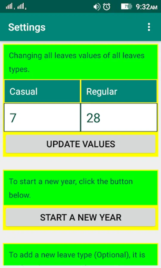 till now, there are 2 other possible leave types you can add apart from casual and regular leaves..