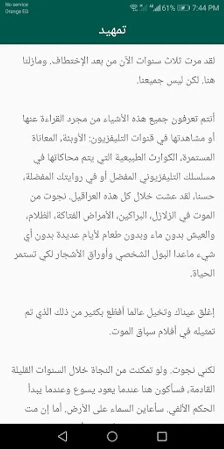 You know all of these things by just reading about them or watching them on TV channels: epidemics, constant suffering, natural disasters that are simulated in your favorite TV series or in your favorite novel, well, I lived through all these obstacles. I survived death in earthquakes, volcanoes, deadly diseases, darkness, and living without water and without food for many days without anything except personal urine and tree leaves so that life can continue.
