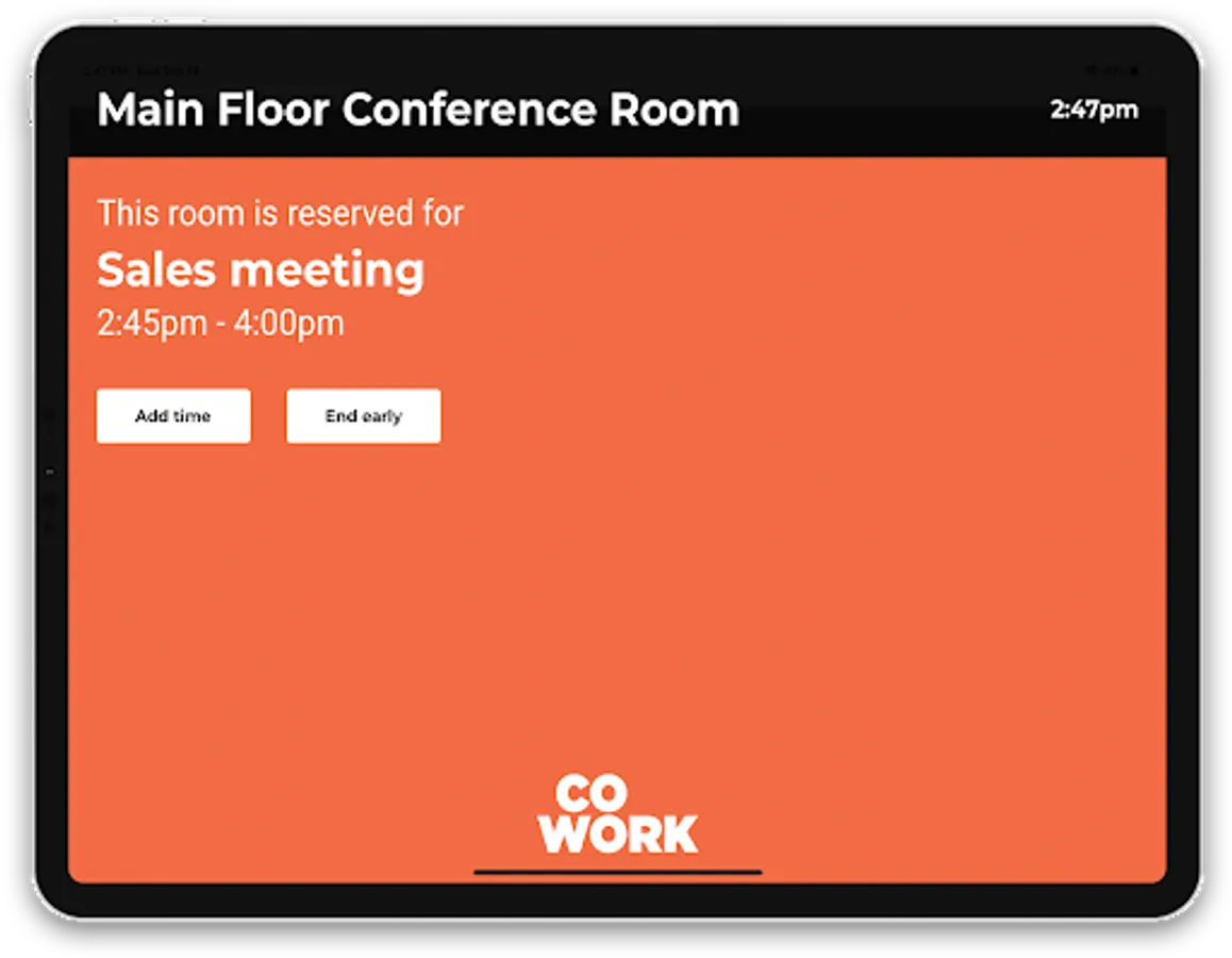 And now you can place a second tablet within a conference room to remind your users to check in, how much time they have left and even allow them to book additional time. Friendly audio prompts ensure that no one accidentally stays longer than their reservation allows.