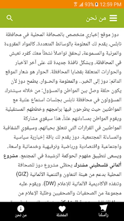 Dooz is a local news agency specialized in Nablus governorate, it offers a platform for citizens to express their concerns, demands and talents. Dooz is considered a link between citizens and officials to strengthen transperancy and good governance.