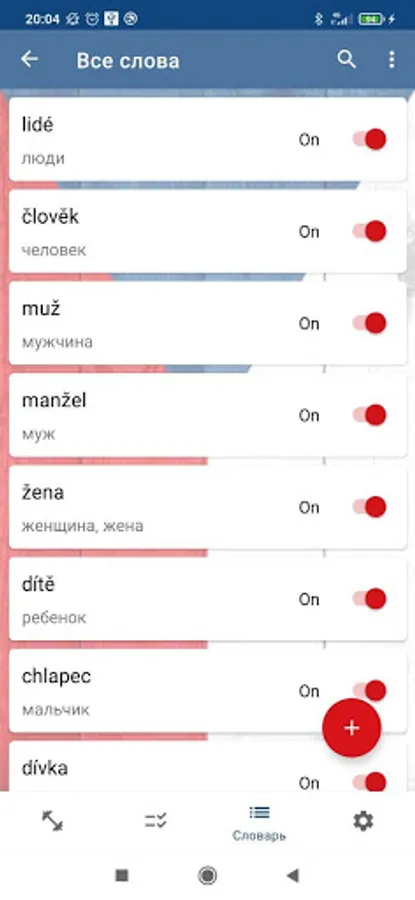 Words are divided into 15 subtopics that you can turn on and off in the settings, and learn only what you want.