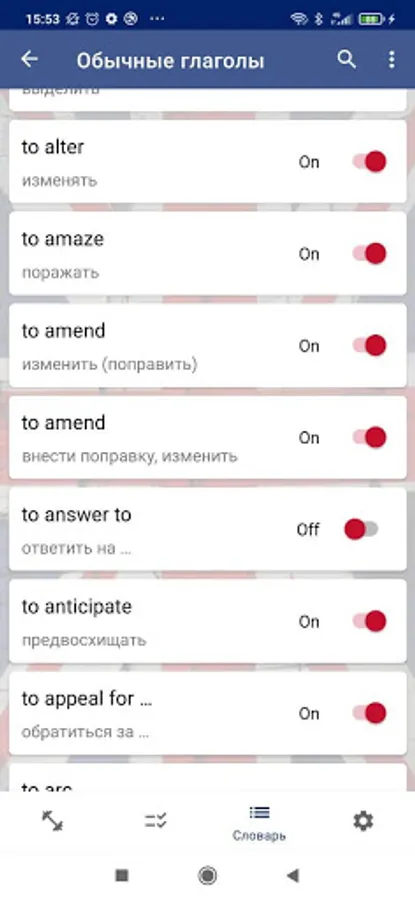 You can turn off boring, learned words by swiping down or delete them altogether.