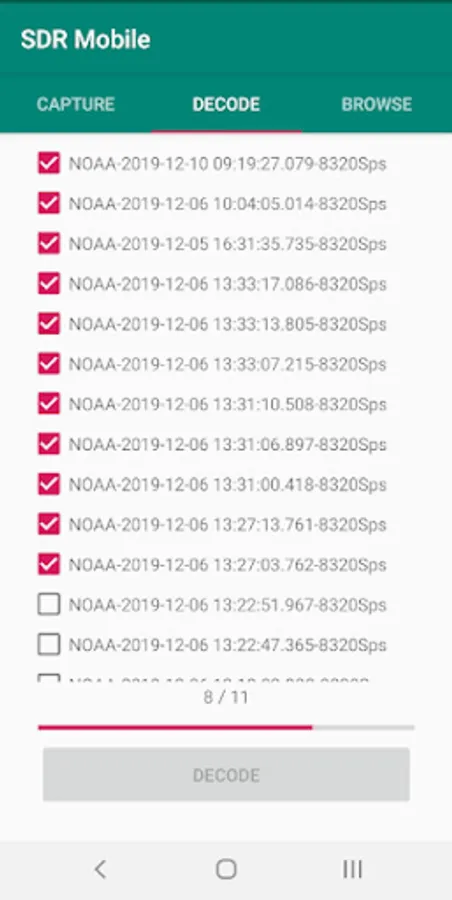 Modern mobile handsets do have powerful processors that allow for signal processing in combination with SDR boards. This application implements a proof-of-concept system capable of receiving, decoding and displaying satellite data.