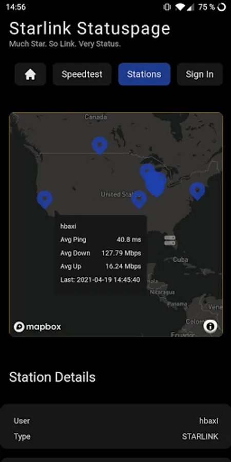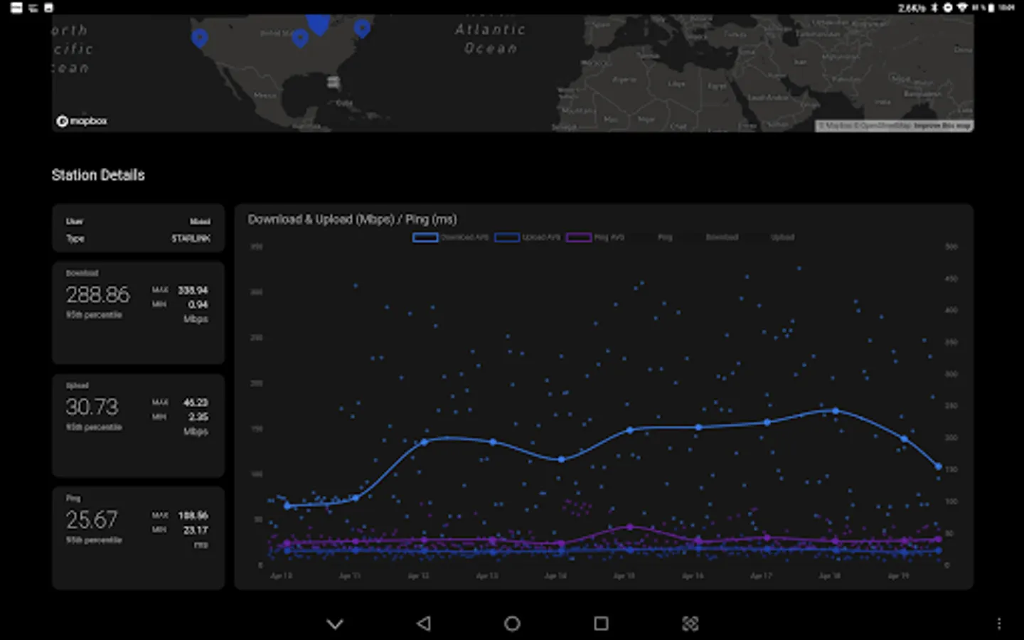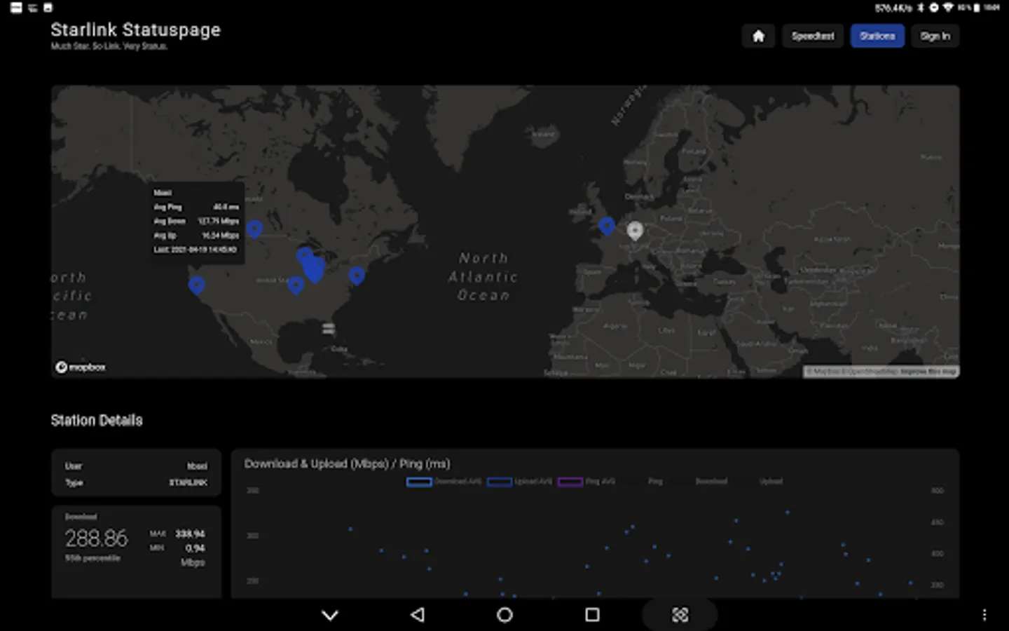 This App allows you to have quick Access to the Starlinkstatus.space Webapp that offers Starlink Statistics that are collected by the Community as well as a Custom Ookla Speedtest that provides Speedtest Data for Us to Analyze.