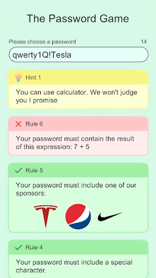 If you're tired of the same old mundane games, "The Password Game" is your ticket to a lighthearted and entertaining experience. Laugh at the ridiculousness of modern password rules while enjoying captivating gameplay that will keep you hooked for hours.