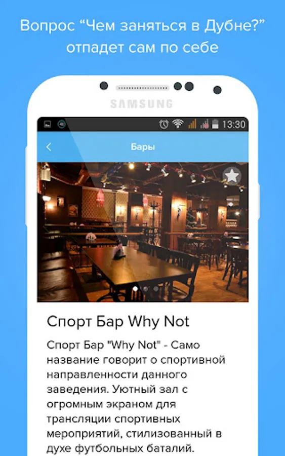 With the mobile application "Dubna. City in the palm "You can easily find the address, contact phone numbers and working hours of the organizations in the city of Dubna, enterprises will be able to see the location on the map and build the route. Learn about the events in the city, create your own phone book, find out the weather, call a taxi one-touch, find the nearest restaurant or hotel, and more. Our app will be useful not only to residents of Dubna but also becomes a full assistant for guests.