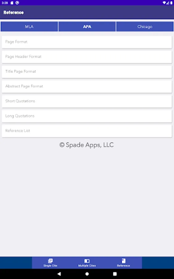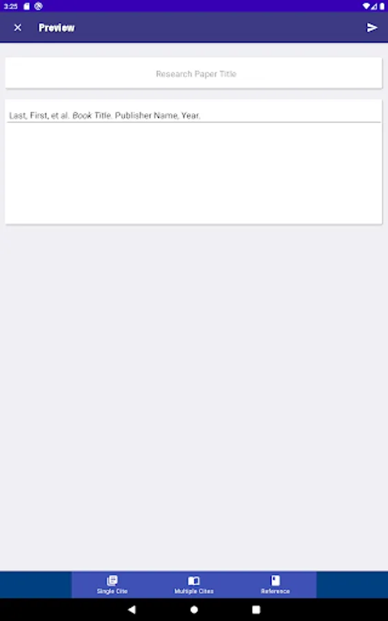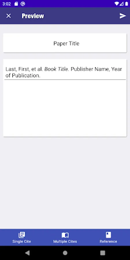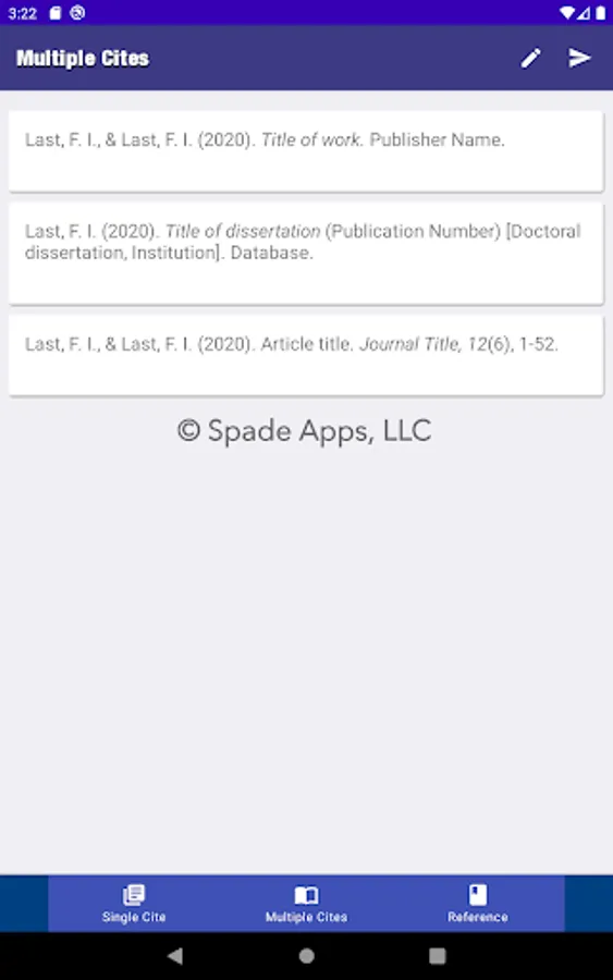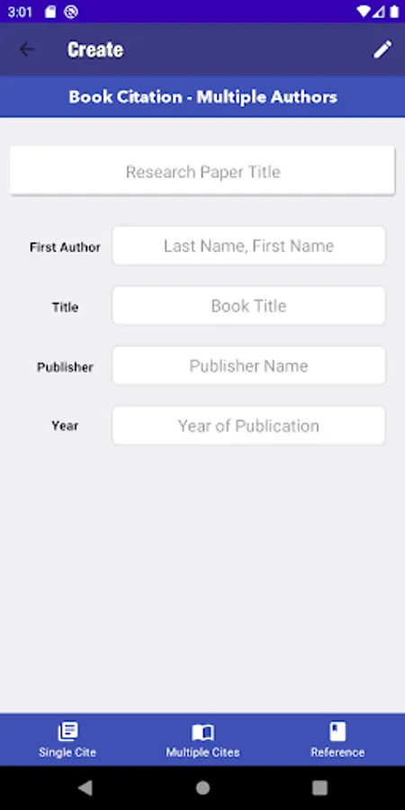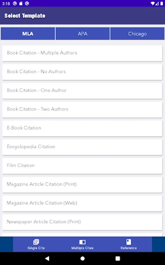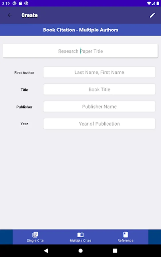 Cited is the easiest citation creation app. Simply select your paper format and your template, enter the information, and press create. Now with a section to create and save multiple citations.
