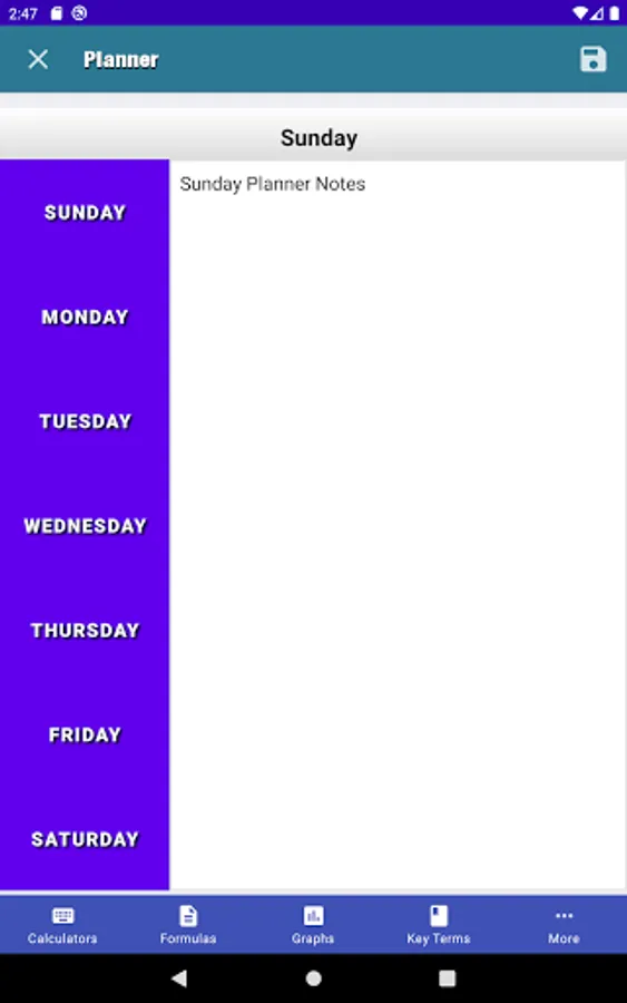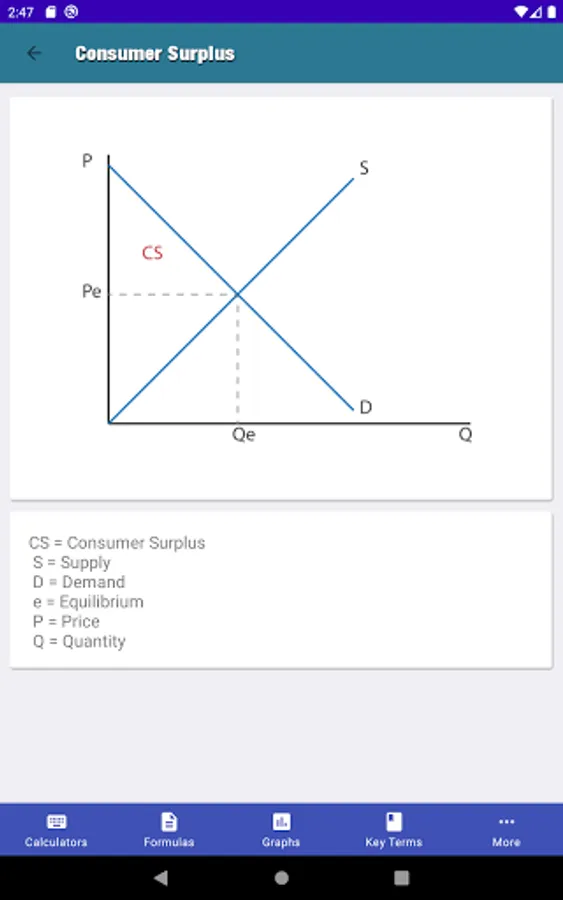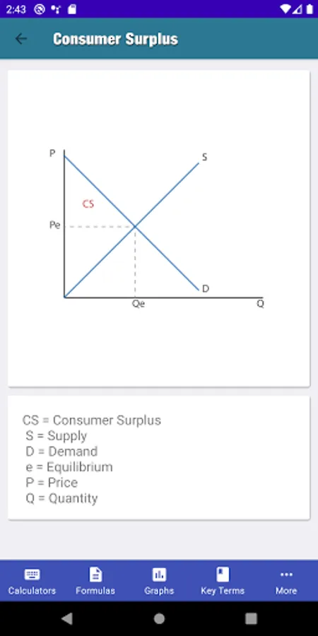 MicroEcon provides the student with the core formulas of microeconomics, basic microeconomics calculators to assist the students with their homework and studies, key terms section, most used graphs section, a section to take notes for class, a study guide builder, and a weekly planner.