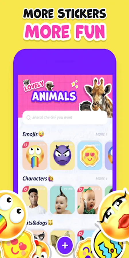 - Getting stickers can be that easy: 1000+ stickers in different categories, such as Emojis, Animals, Characters, Expressions, Love, etc. You can save stickers to WhatsApp, iMessage and Library.