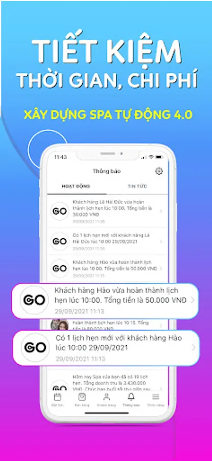 Automatically sync customers from fanpage to SPAGO, thereby helping you to send CKSH messages, remind appointment, marketing completely free. In just a few seconds you can add a new customer or import thousands of existing customers from the phone book. SPAGO helps you manage customers scientifically and post them, easily search, view profile information, service history, purchase, store photos before and after service...
