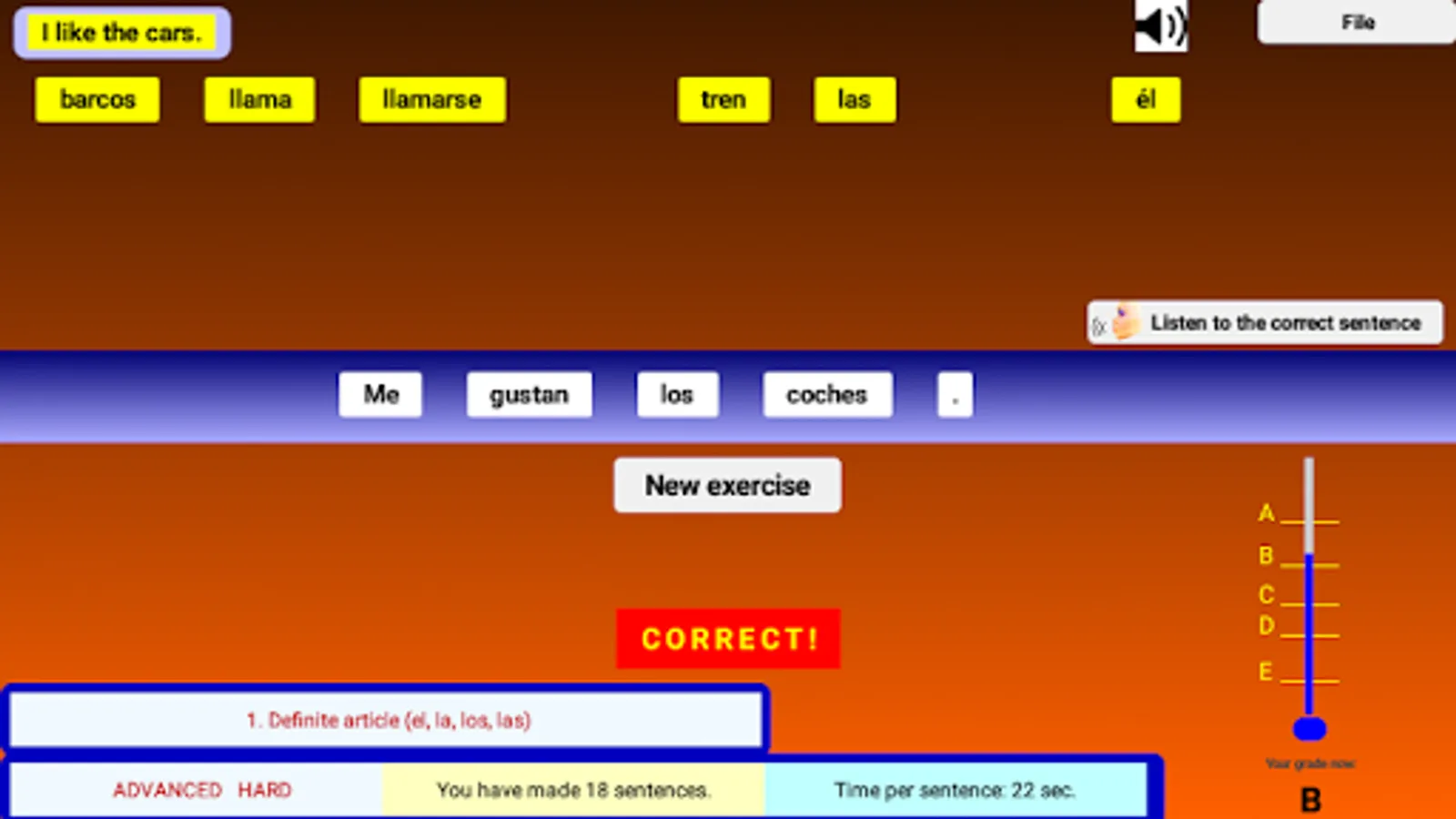 Learn Spanish grammar in a way you’ve never tried before. A Spanish man or lady read out all the words and sentences. You learn a lot without noticing it. Very efficient and it’s fun too,