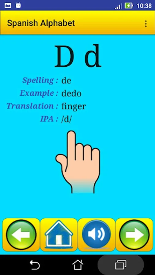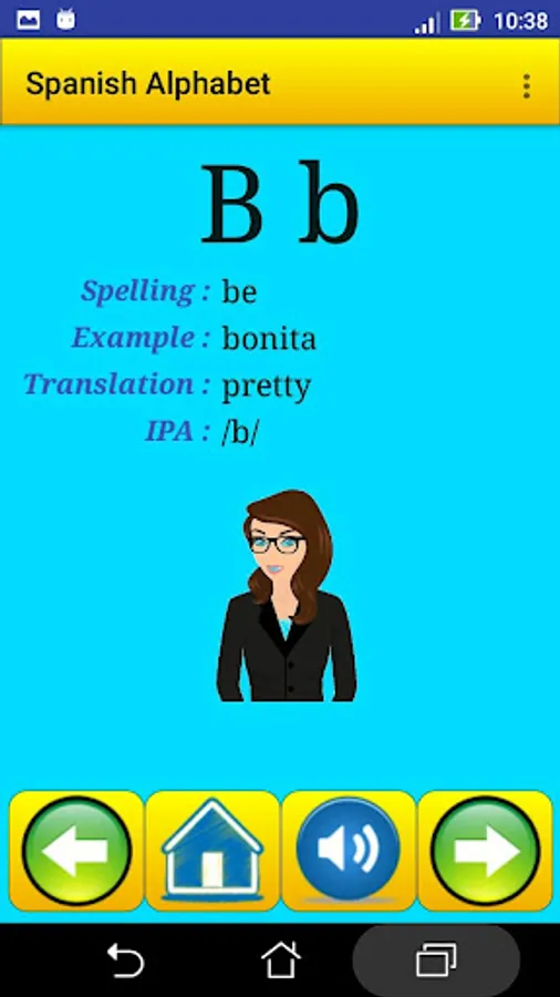 This app contain all Spanish alphabet , exactly 27 letter , it help strangers students in Spain universities , for learning and speaking the alphabet and the pronunciation .