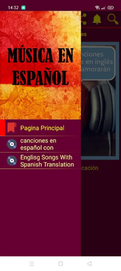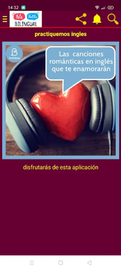 la aplicación contiene las mejores canciones en Español e Inglés con sus traducciones