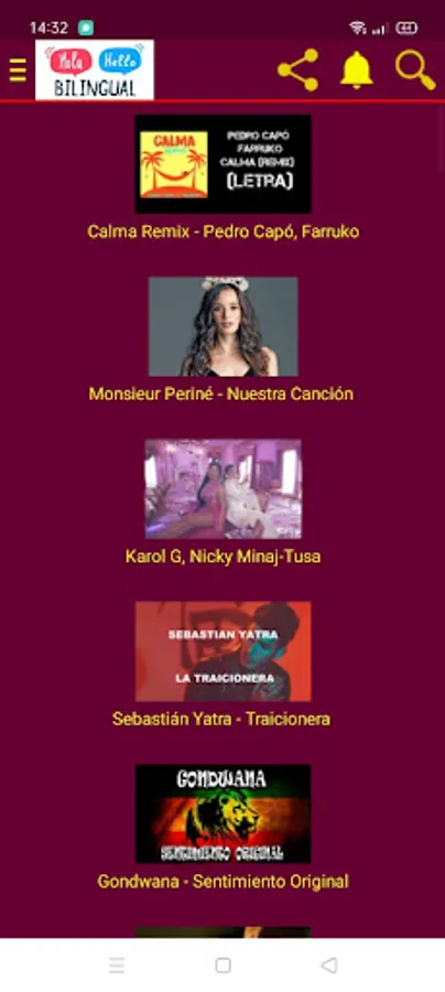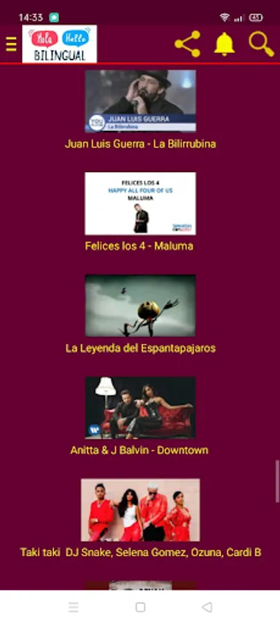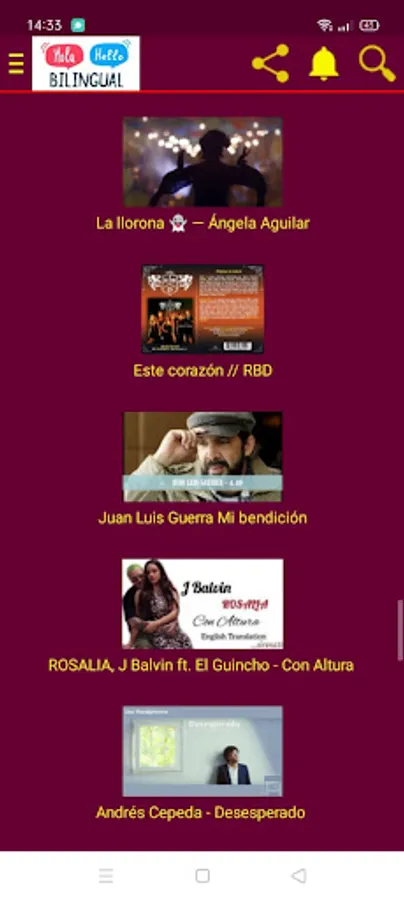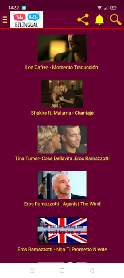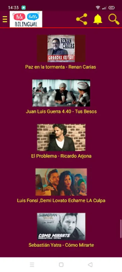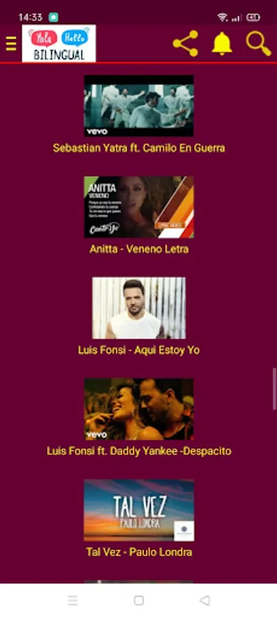 the application contain the best Spanish and English songs with its translations