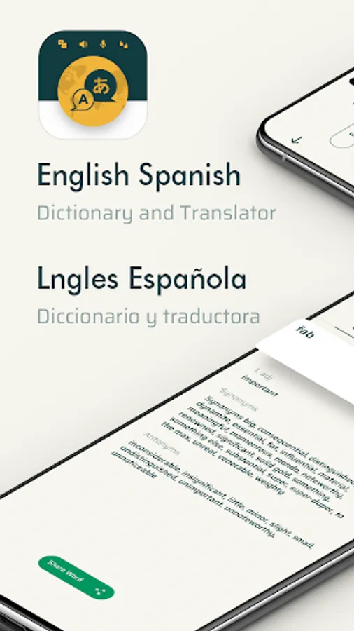 English to Spanish Dictionary and Spanish to English Dictionary or Spanish English Translator app is one of the largest Spanish English Dictionary database for learning English definitions, synonyms, audio pronunciations, example sentences and much more. This Learning English app give you meanings and Images related to that particular word.