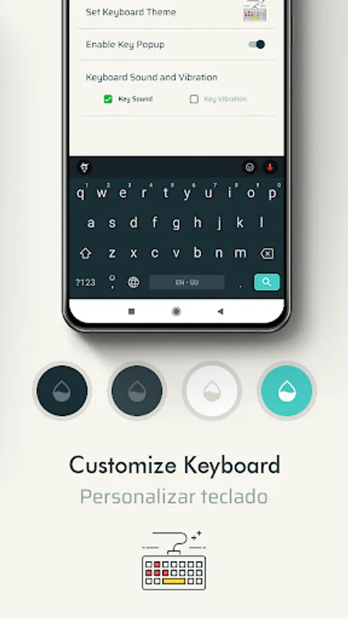 - App also provide Spanish English keyboard and you can customize it. (Change background color, key text color and key background colors)