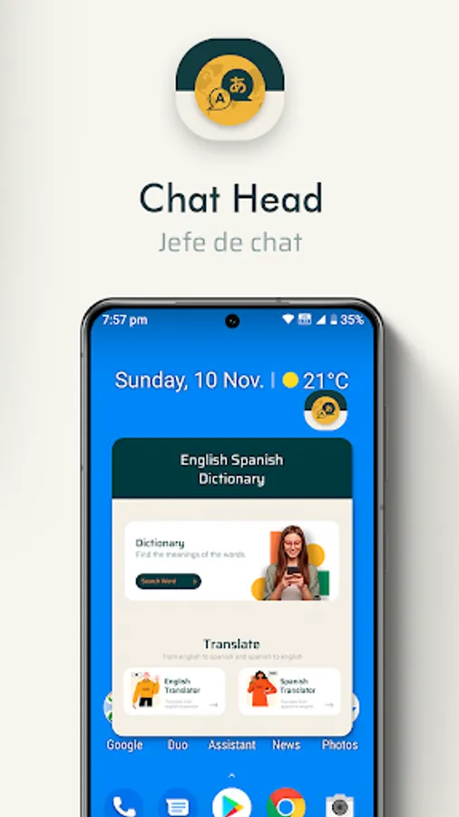 - App gives chat head for access translator and dictionary feature from anywhere in phone