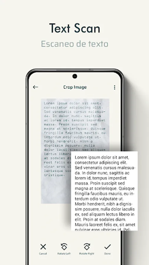 - Text scan feature for scan text from image or capture image and translate it into Spanish or English.