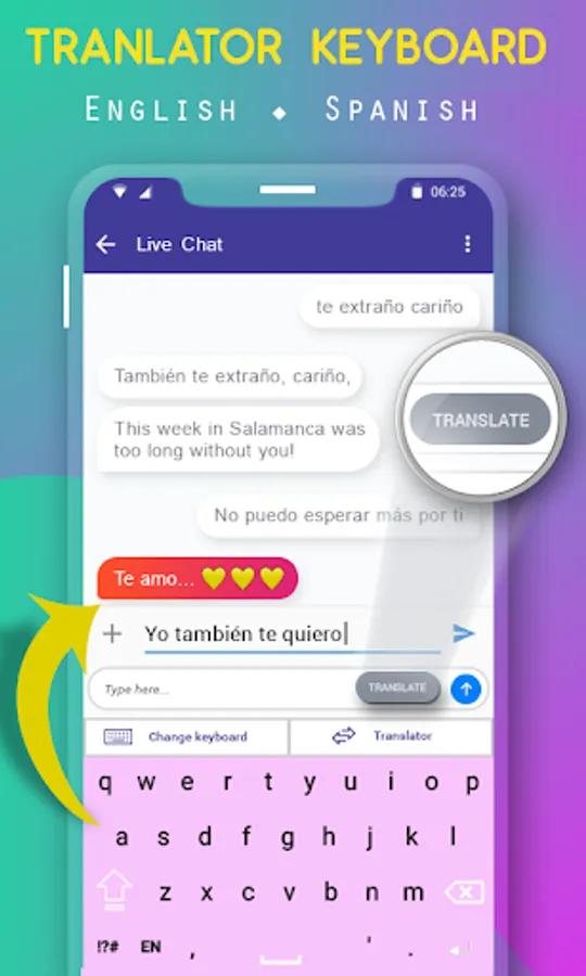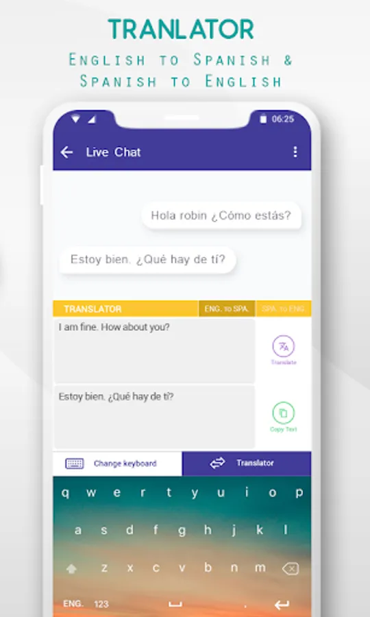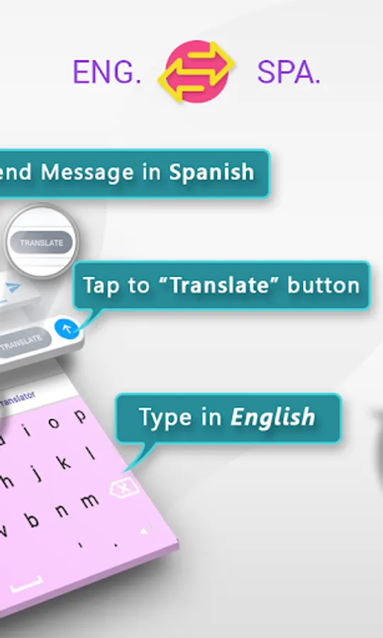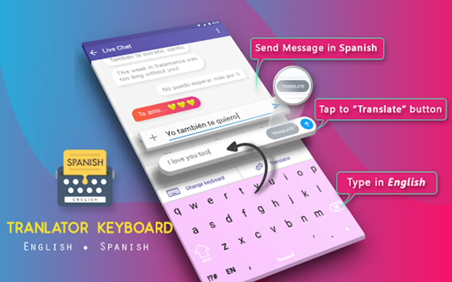 The all new Spanish to English Translator Keyboard or English to Spanish Translator Keyboard is here. Spanish to English Translator Keyboard or English to Spanish Translator Keyboard allows you to translate between English and Spanish while you are messaging.