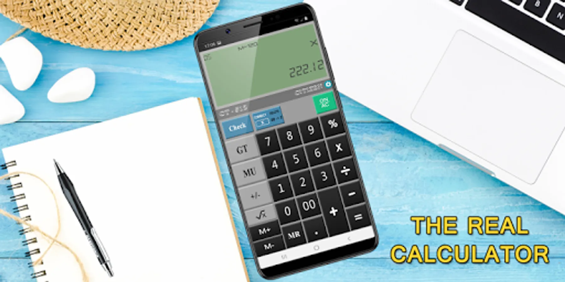 Real Calculator gives you all the functionality like addition, multiplication, subtraction, division, percentage with MU , M+, M-, Correct , Check and many more here you get and calculation became more easy.