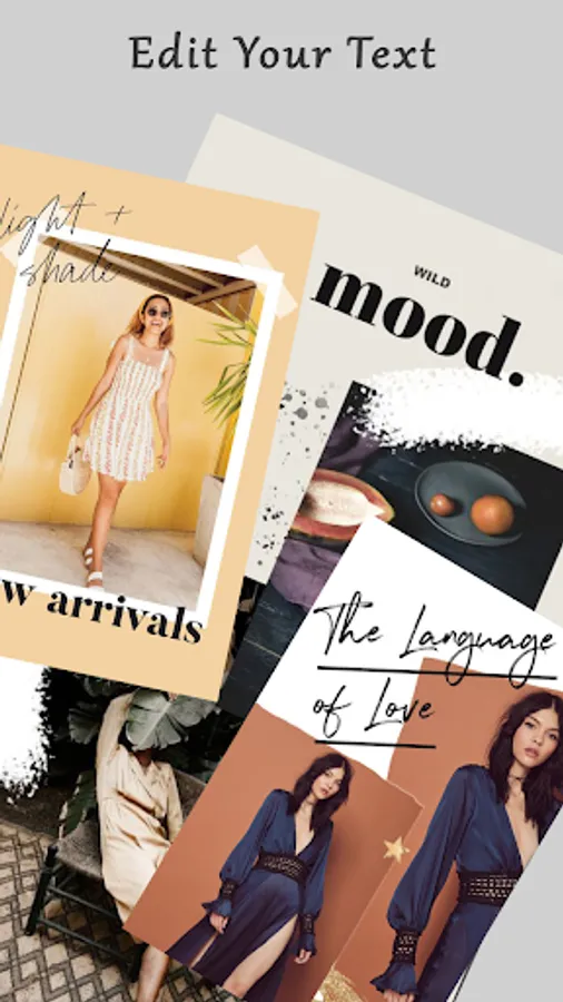 High quality templates collections included with photos, texts, backgrounds & filters.