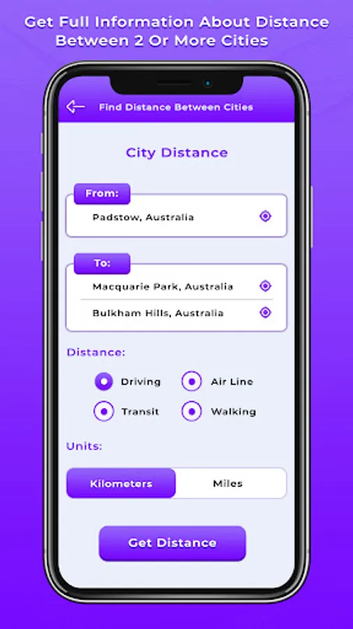 * Calculate distance for driving, airline, walking & transit types.
