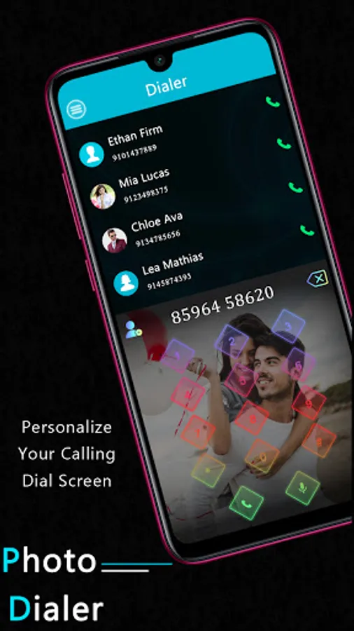 Personalize your calling dialer screen with place a photo or gif of your choice to make a dial screen of your own with "Neon Photo Dialer - Floating Photo Phone Dialer" application.