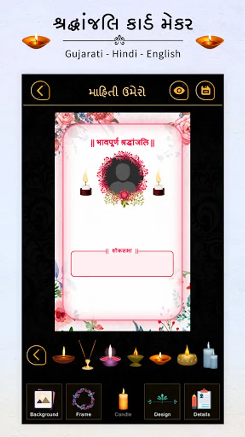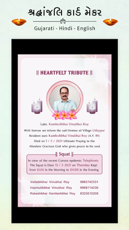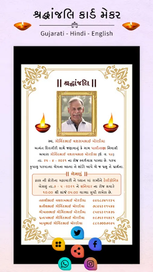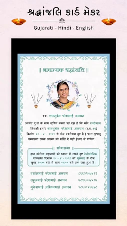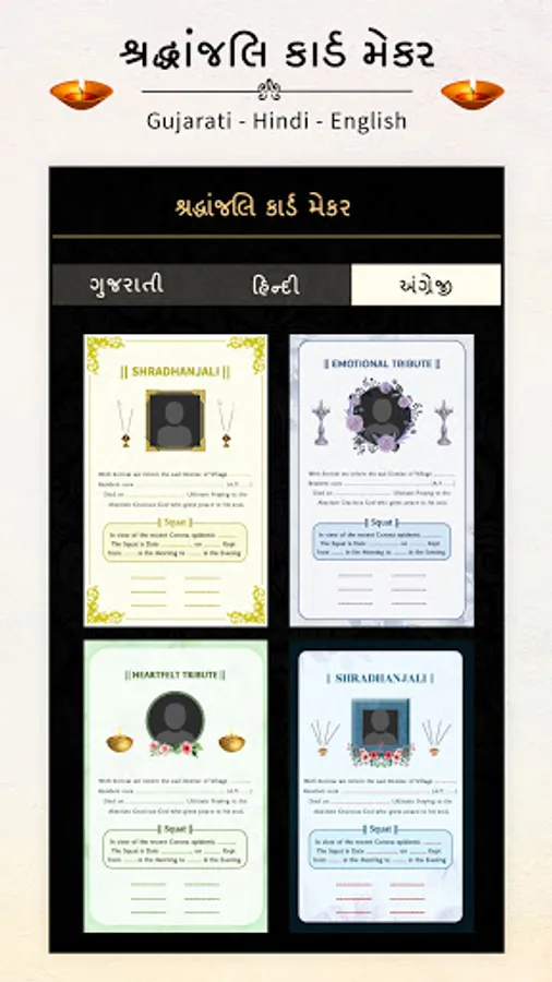 * Create Shradhanjali cards in gujarati, hindi & english languages
