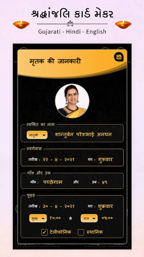 We hope "શ્રદ્ધાંજલિ", "श्रद्धांजलि" , Shradhanjali card maker application helps a lot now a days.