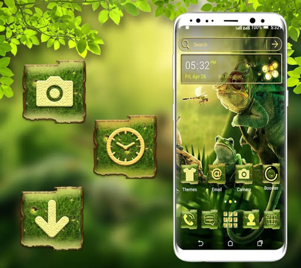 Chameleon Frog Theme have Frog backgrounds, Green app icons, Frog fashion wallpapers This Chameleon Frog Launcher (icon packs) theme is specially designed for people like you who love Frog Style.
