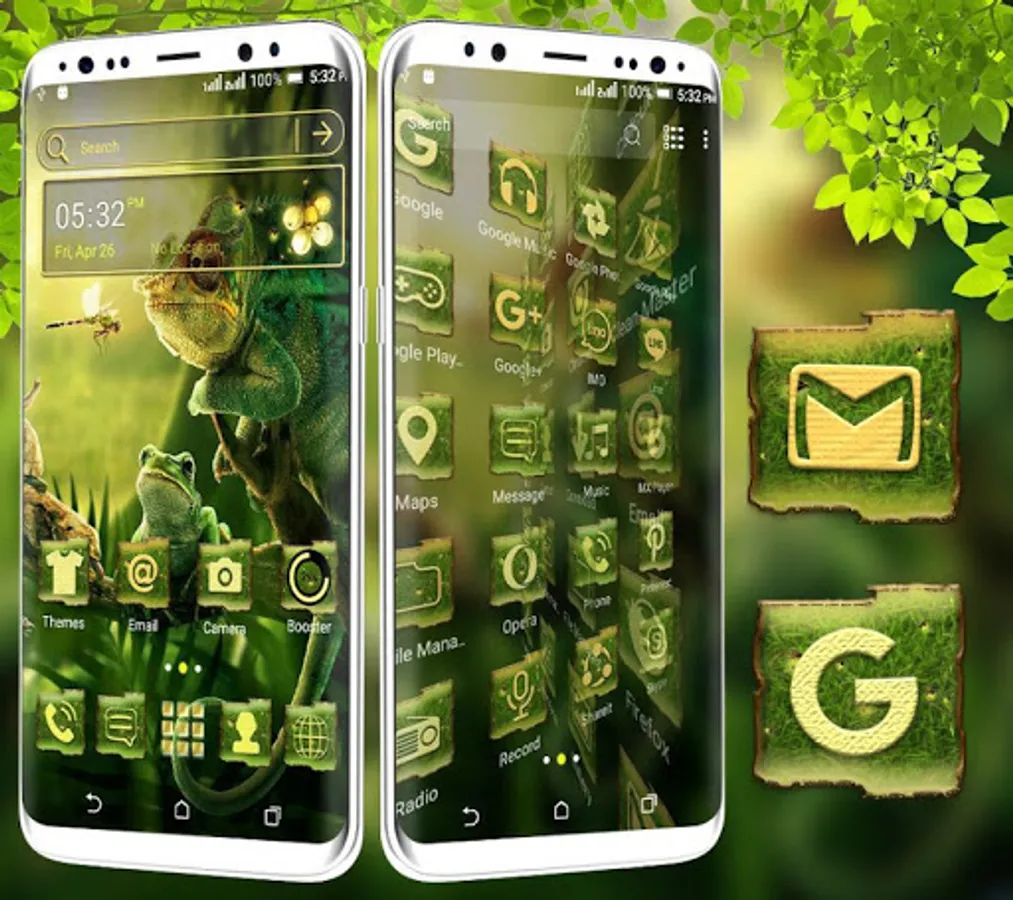 ❤ Chameleon Frog Theme included many HD customized Icons of popular apps, social app, System app icons.