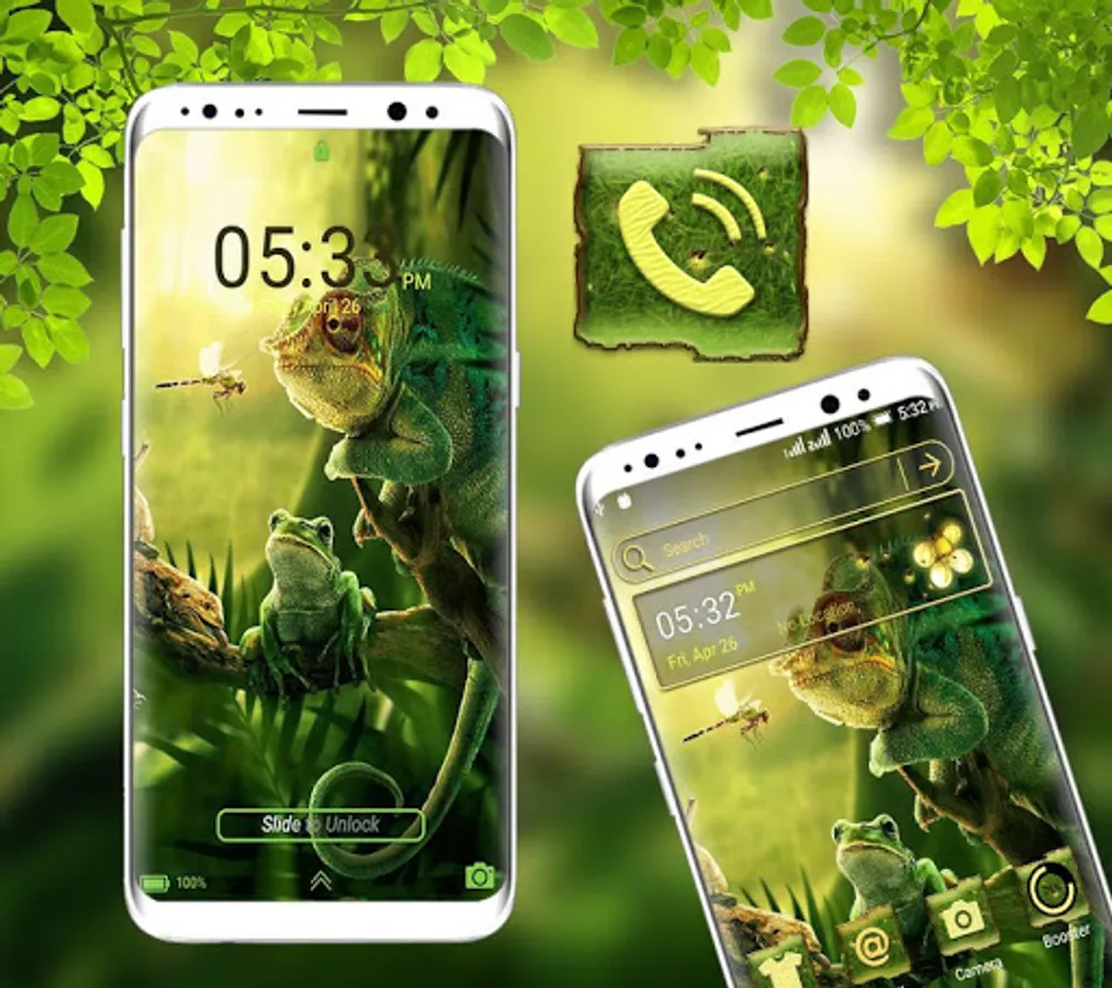 Chameleon Frog Launcher theme is designed to let you enjoy Frog feeling, a faster and smoother mobile and clock operating experience.
